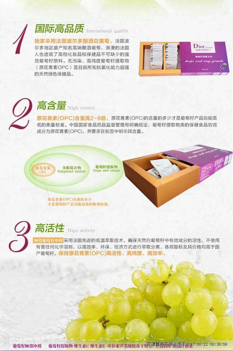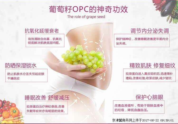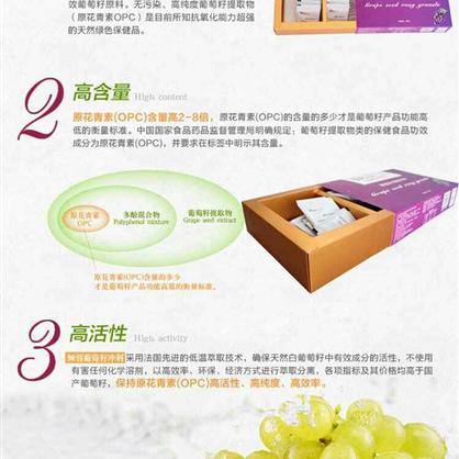 葡萄籽是经晒干后分离葡萄皮,葡萄梗后所的产物,具有能量高,无毒副作用,葡萄籽能抗氧化,抗辐射,抗过敏,抗炎,淡化色斑,降低黑色素,美白肌肤,祛黄褐斑,能刺激细胞分裂与组织再生,活化表层细胞,减少皱纹,延缓衰老,葡萄籽提取物被誉为天然的阳光遮盖物,能阻挡紫外线侵害皮肤,消除自由基,改善皮肤弹性与光泽,美白,保湿,减少皱纹,保持皮肤的柔润光泽。