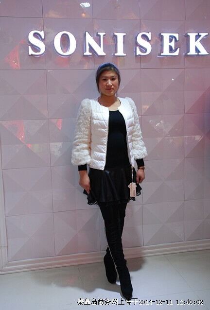 新款短款羽绒服,时尚新颖百搭,保暖大方本白色纯兔毛拼接,新世纪快时尚优惠大酬宾,喜迎新年,特推出淑女心情品牌女装全场满一百元赠一百元话费,满两百赠两百元话费,以此类推,优惠多多,送完为止,喜欢时尚羽绒服的美女快来选购吧!
