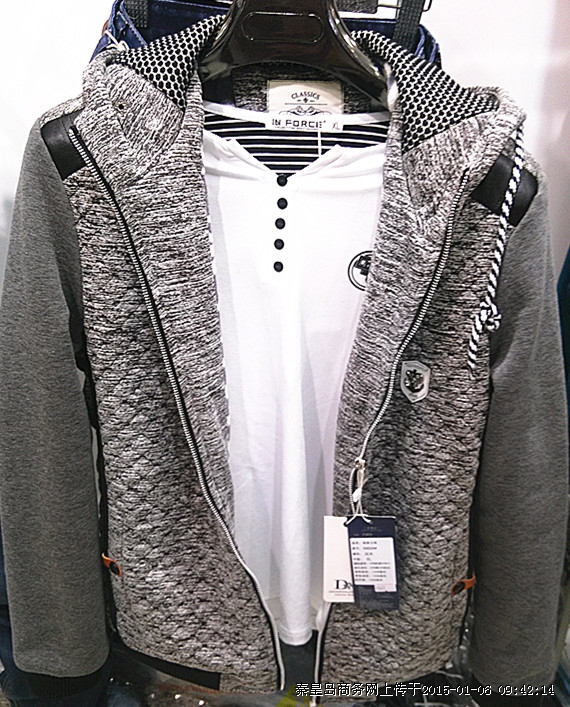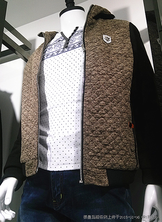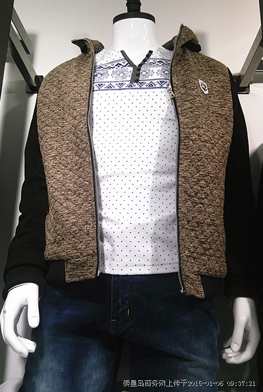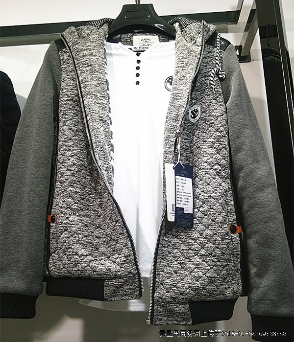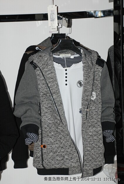 休闲保暖舒适加棉上衣,灰色,棕色,两色可选,品质优良,休闲时尚。新世纪快时尚优惠大酬宾,庆元旦·迎新年,动感酷八品牌男装特推出全场满一百立减20元优惠活动,大家快来选购吧!