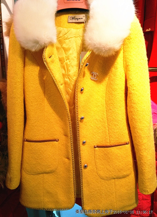 新款长款羊毛尼,粉红色,黄色,两色可选,新世纪快时尚优惠大酬宾,喜迎新年,特推出时尚女装全场满一百元赠一百元话费,满两百赠两百元话费,以此类推,优惠多多,送完为止,喜欢时尚羊毛尼的美女快来选购吧!