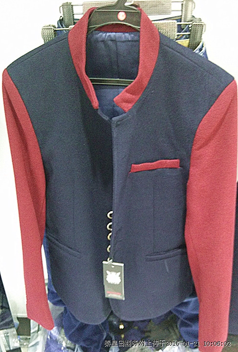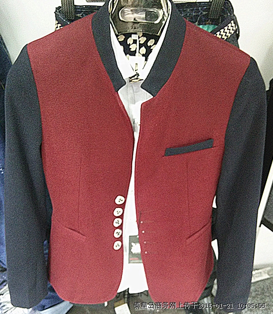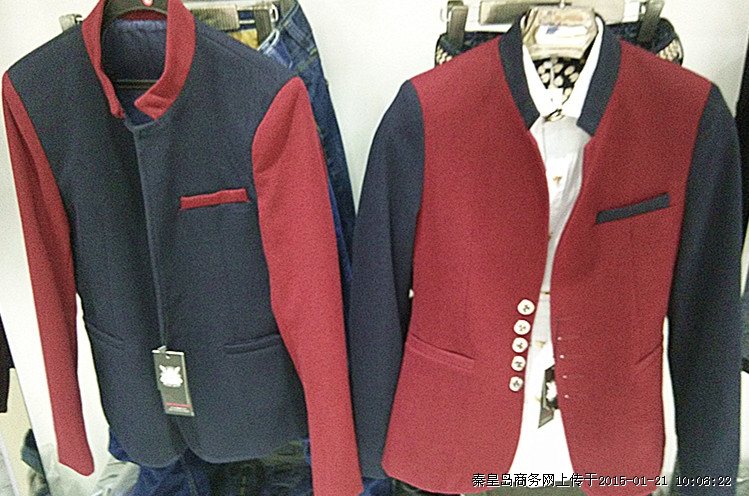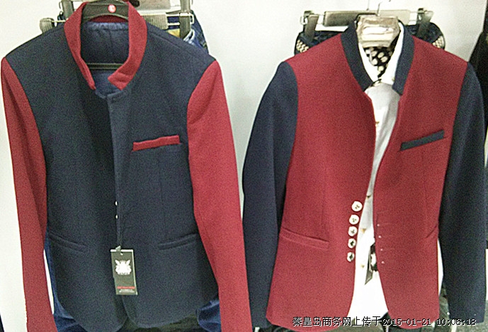 新款休闲时尚新颖小西服,红背蓝袖,蓝背红袖,两款可选,品质优良,休闲时尚。新世纪快时尚优惠大酬宾,喜迎新年,动感酷八品牌男装特推出全场满一百元赠一百元话费,满两百赠两百元话费,以此类推,优惠多多,送完为止,大家快来选购吧!