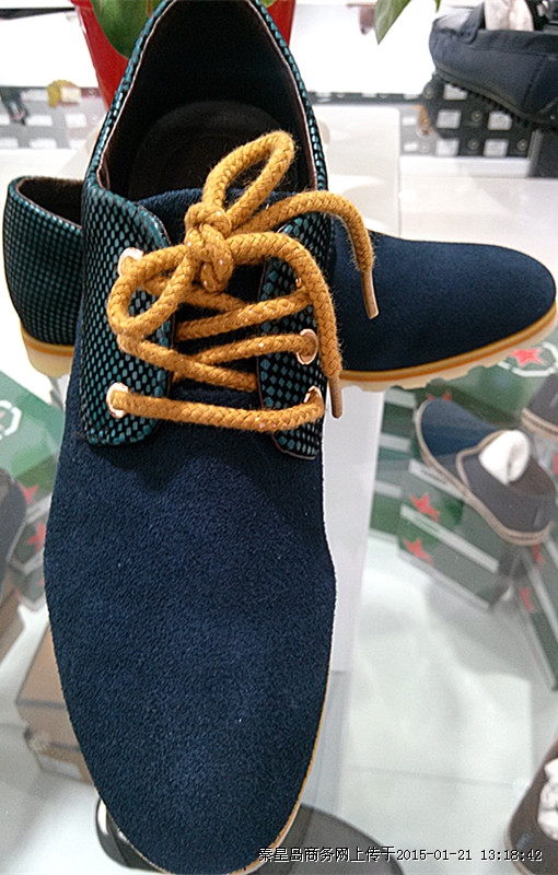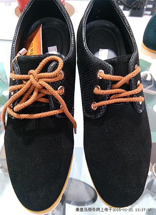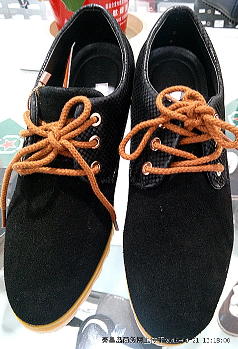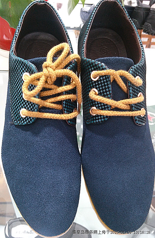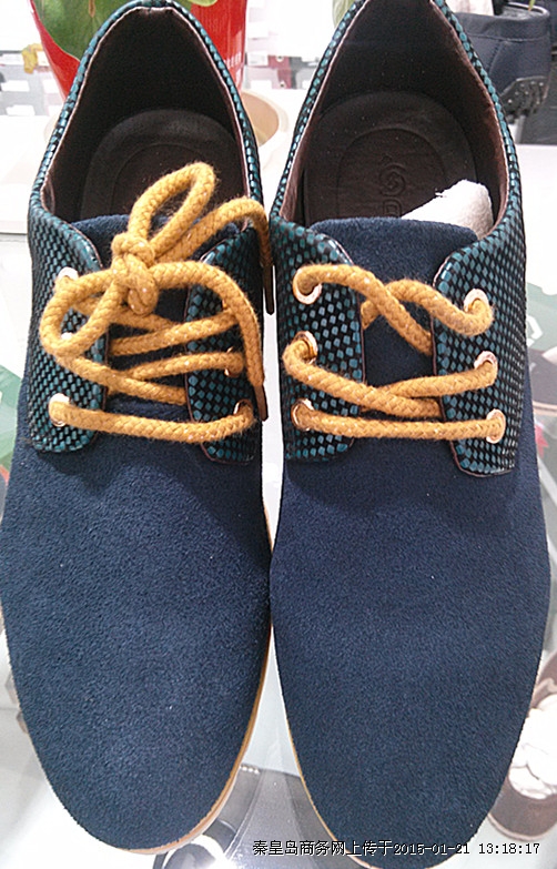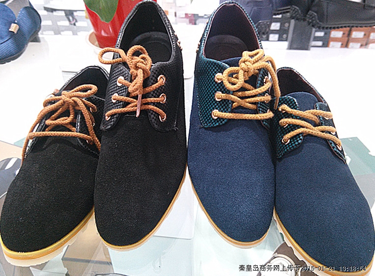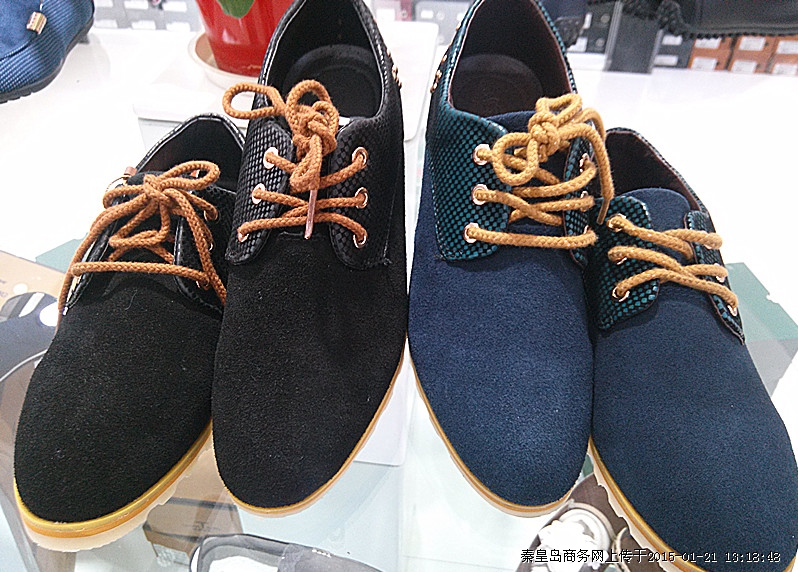 彩池新款时尚男款休闲单鞋,简单大方,穿着舒适,蓝色,黑色两色可选。新世纪快时尚优惠大酬宾,喜迎新年,特推出时尚品牌男鞋全场满一百元赠一百元话费,满两百赠两百元话费,以此类推,优惠多多,送完为止,帅哥们快来选购吧!